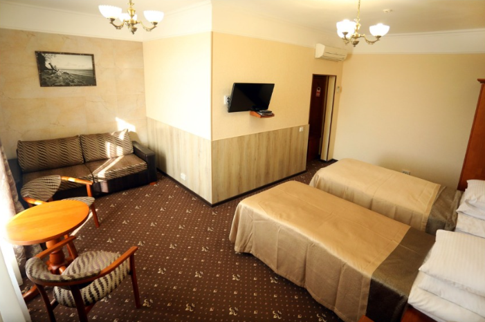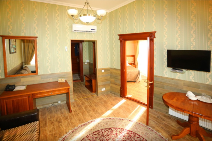 4-этажное здание отеля имеет прекрасный внешний вид и внутренний дизайн. В нём 23 номера, укомплектованы необходимой мебелью, независимо от категории. Каждый номер располагает санузлом с душем или ванной, электронным замком и имеет всё необходимое бытовое оборудование: кондиционер, ТВ и Wi-Fi, телефон, холодильник, сейф.