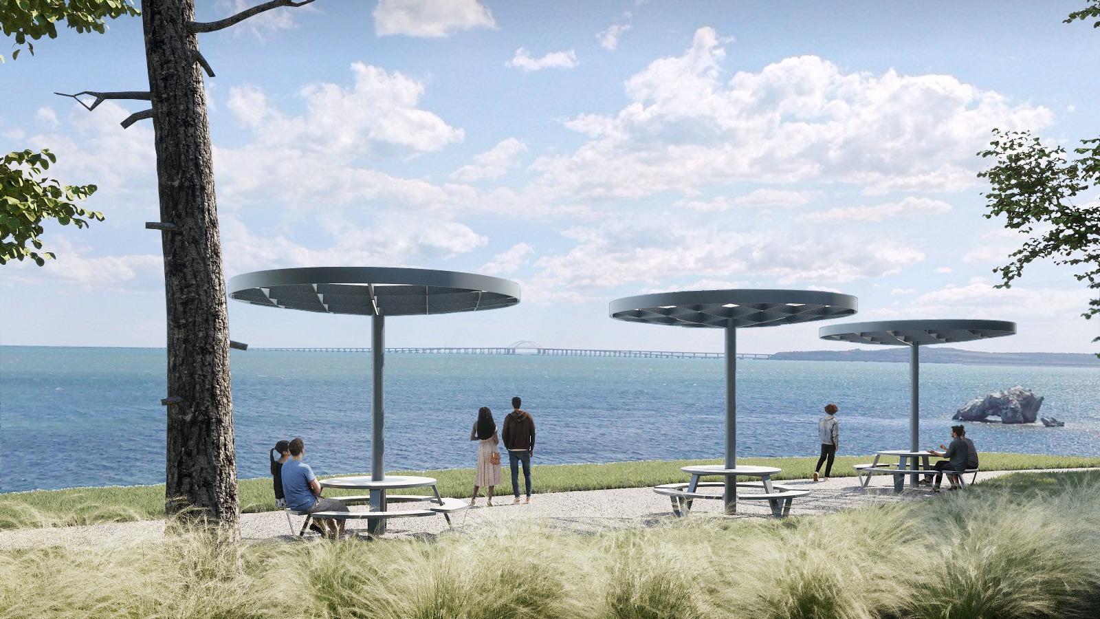 • В 150 м — берег моря, яхт-клуб, • Прямой вид на Керченский мост