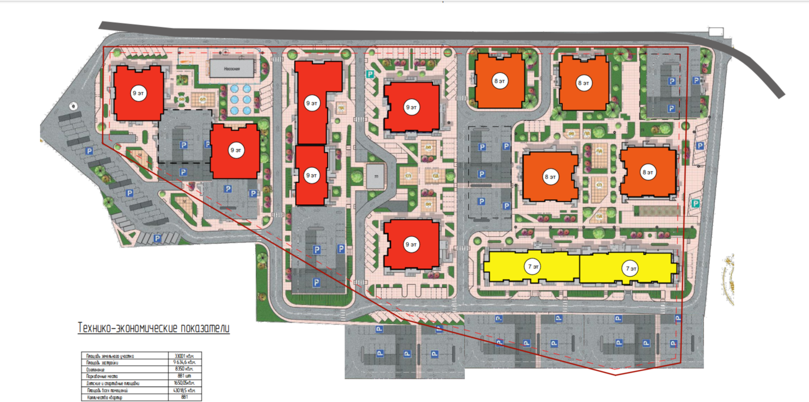 Площадь участка — 33 001 м² • Разрешённая этажность — до 8 этажей, • Назначение: многоэтажная жилая застройка (Ж-3) • Предусмотрена коммерция и благоустройство
