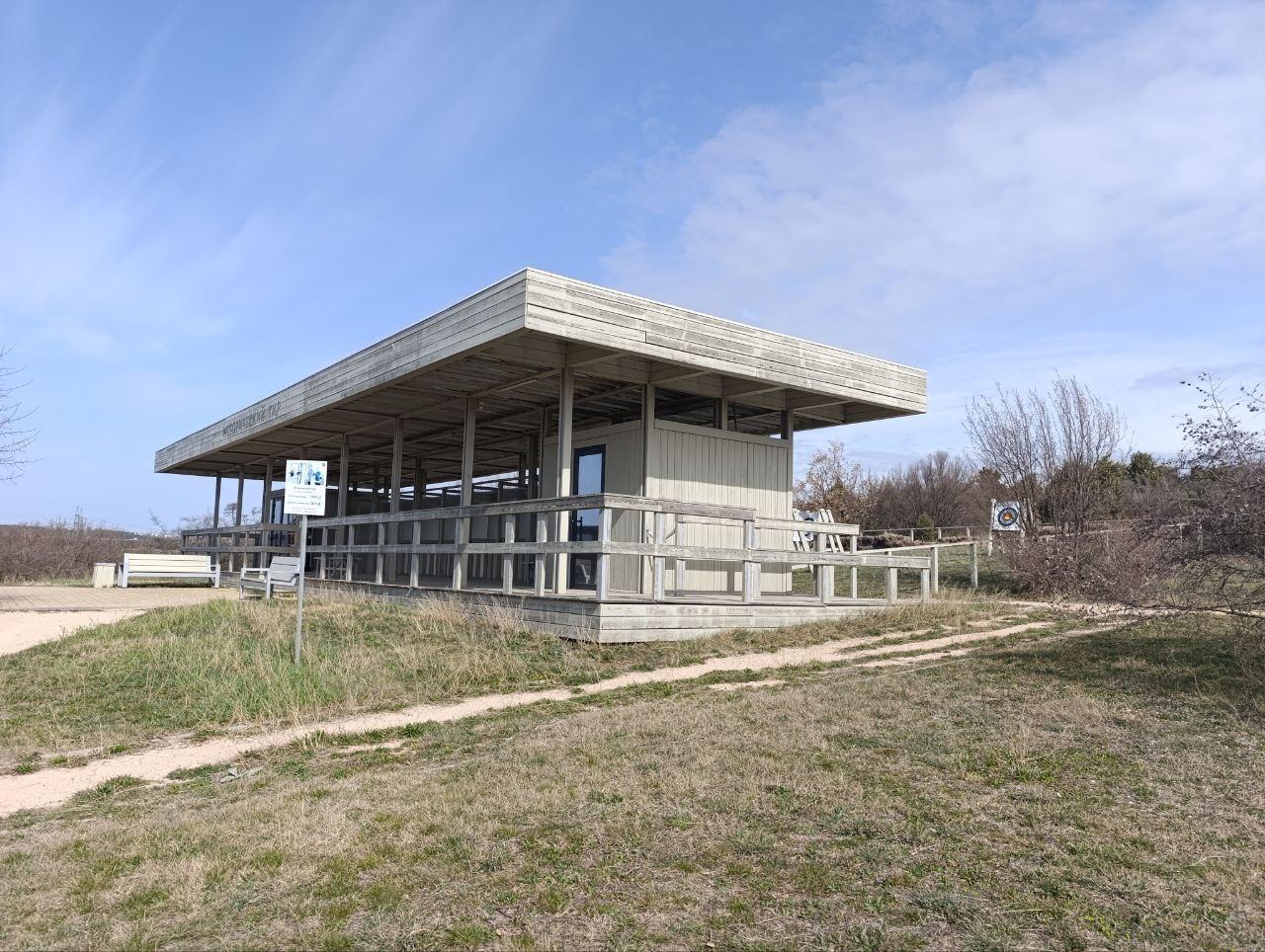 Кластер входной зона: Территория имеет парковку на 100 мест и более, ходит маршрутный автобус № 8 (каждый час с 5км.), Кассы, пропускной пункт, кафе-ресторан, закрытый конференц зал на 50 человек, с/у. Ближайший населенный пункт с.Первомайка
